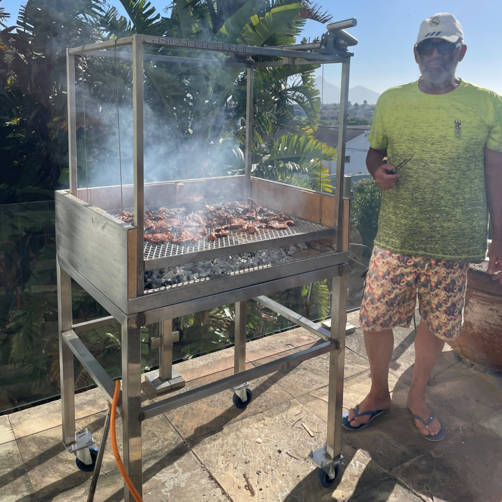 He also took inspiration from the Greek souvlaki/spit method of cooking on an automated rotisserie so he added this component to his design and Brilliant Braai was born.