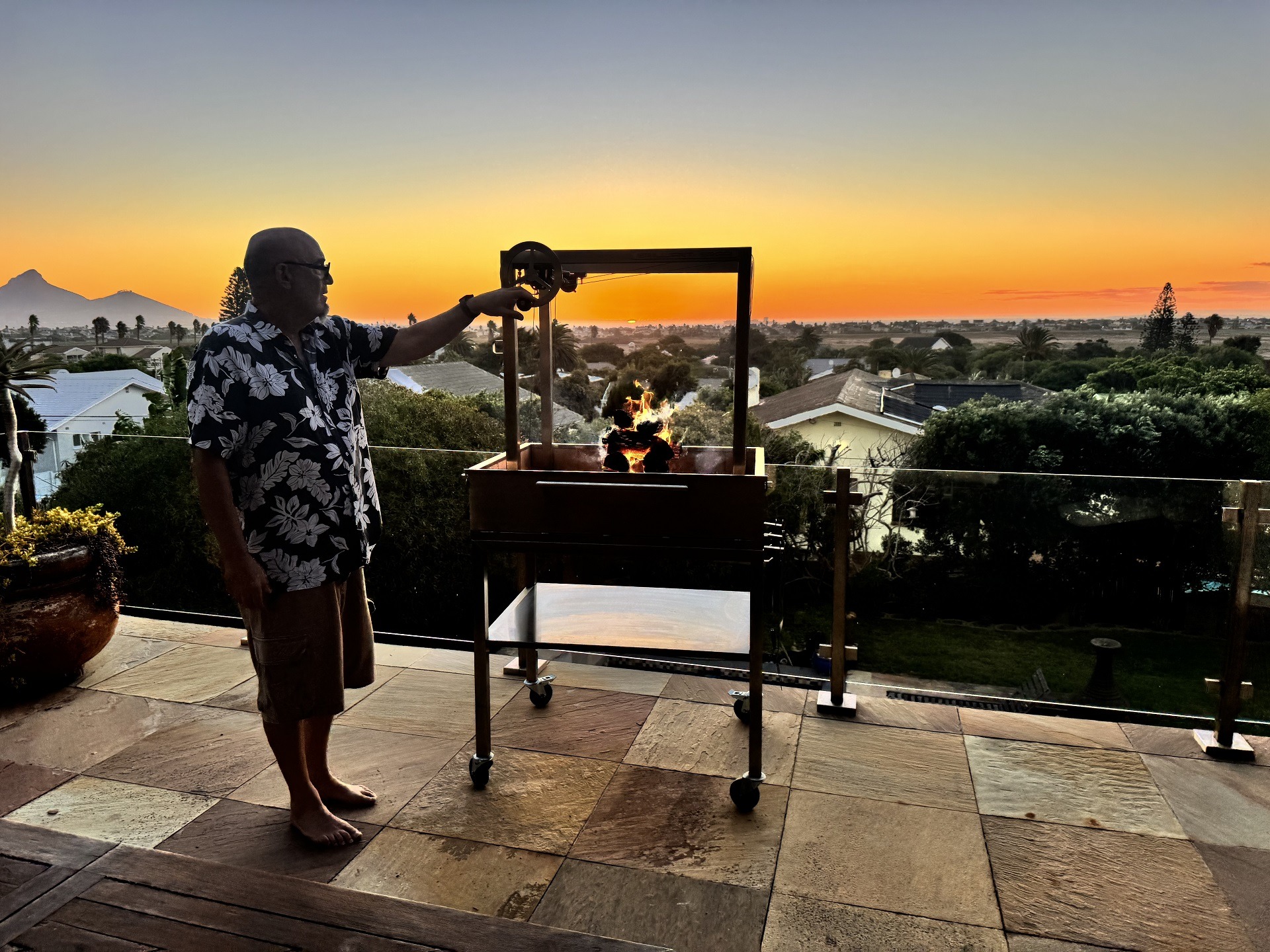Charles took to researching other open-fire cooking methods from around the world, gaining inspiration from South America. Charles incorporated a hoisting mechanism that would allow him to raise and lower his grid easily.