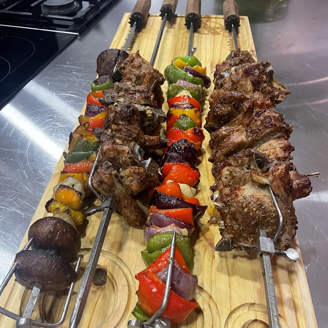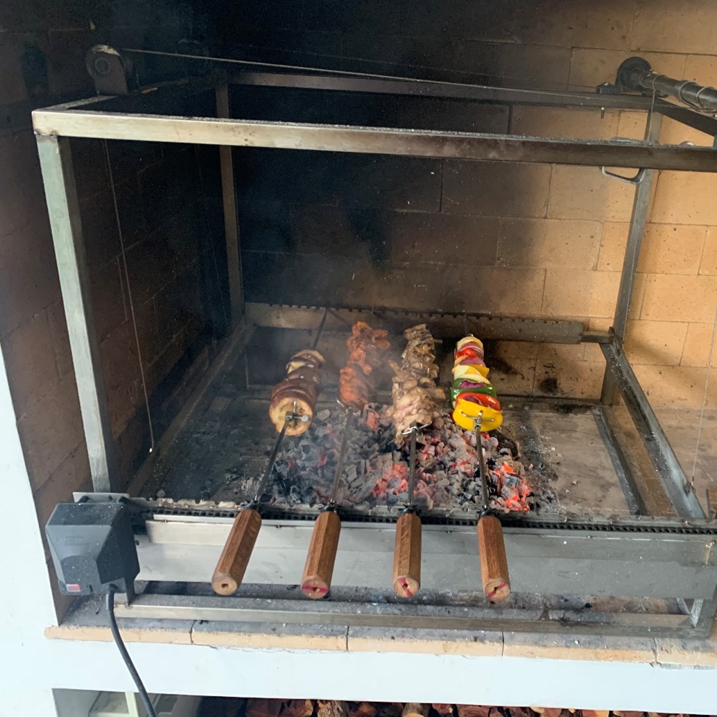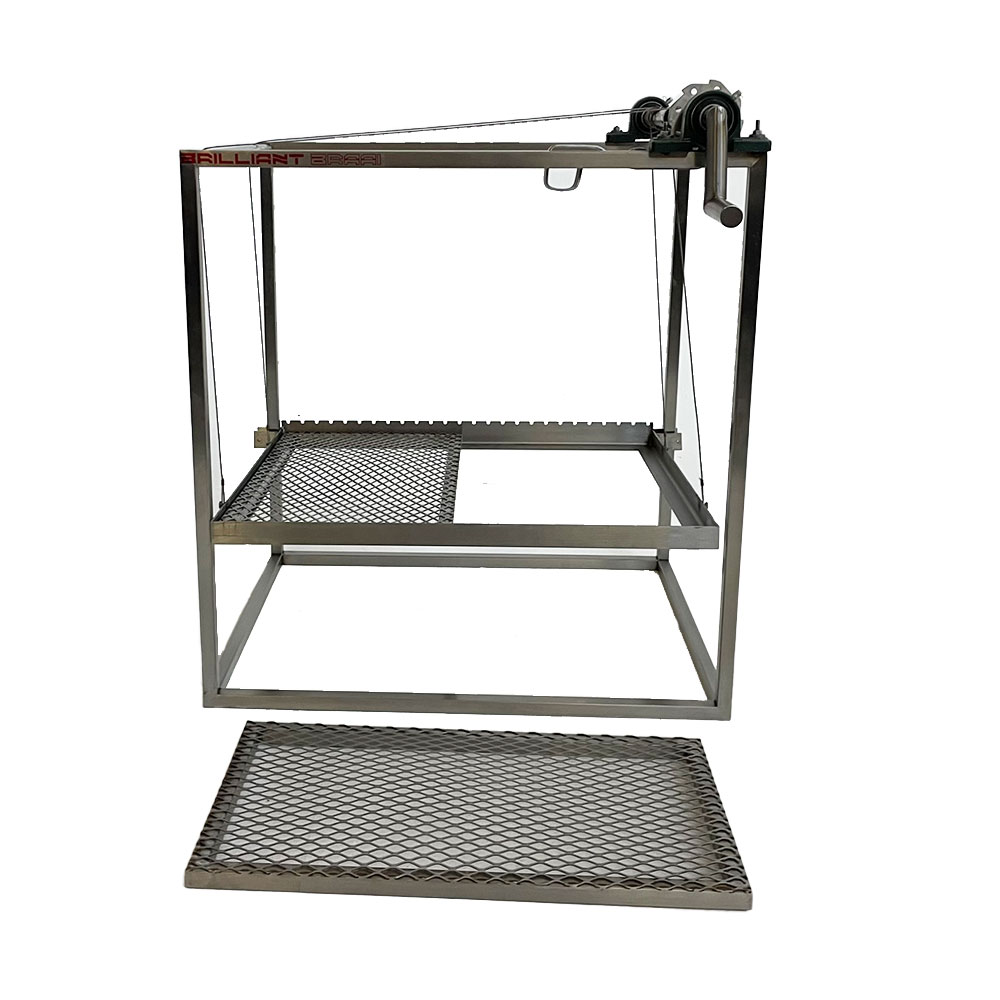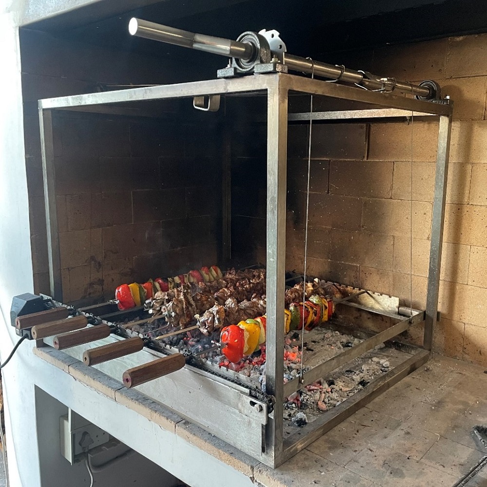 The Full Monty Braai Stand consists of a four poster frame made from 20×20 stainless steel with two grids, the hoist system and the clip on automated rotisserie with 5 skewers. The hoist system easily raises and lowers the grid eliminating the need to wait for the coals to start cooking. The rotisserie can cook a variety of meat and vegetables at the same time, perfect for feeding a crowd. There is even enough space to cook food on the rotisserie and the grid at the same time.