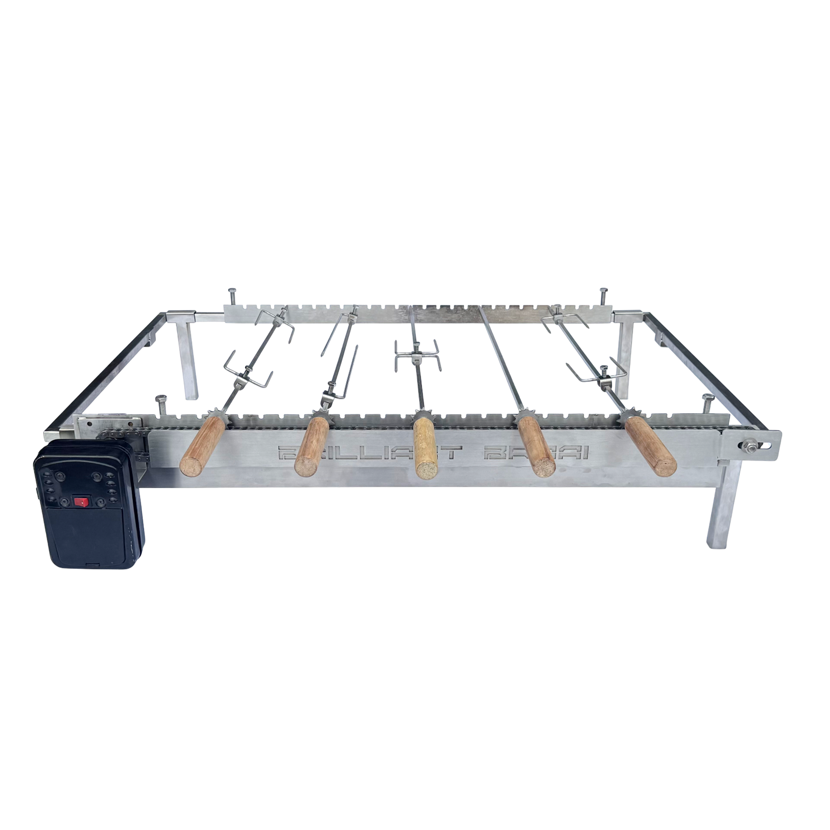 The universal rotisserie with legs is the perfect combination unit which can be used anywhere, anytime. The universal rotisserie fits into most existing built-in braais that have slots for a grid. If you don’t have a built-in braai or are away from home but want to use your brilliant rotisserie, you can use the height adjustable legs to raise the rotisserie and you’re ready to go.